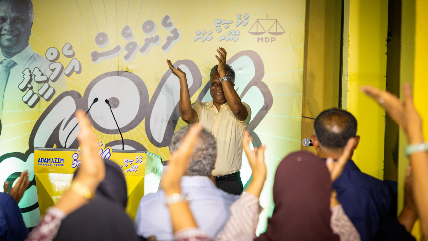 Incumbent Mayor Adam Azim’s campaign focused on his achievements as the mayor in the short span of one and a half years including resolving flooding in Male’ during heavy rain, cleaning gutters and bringing in dewatering pumps.
