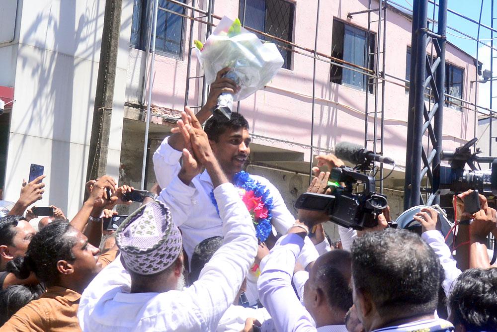 The Police Constable, remanded for allegedly assaulting a lawyer at the Mount Lavinia court premises, was greeted with cheers after being granted bail today.